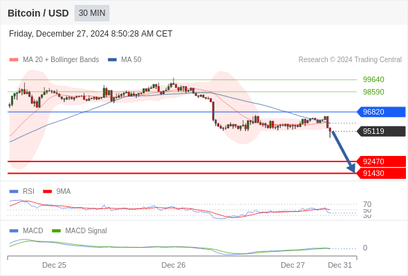 كسر الدعم 92470والثبات أدنى منه على الأقل بشمعة 4 ساعات ستدفع السعر نحو الدعم التالي 91430