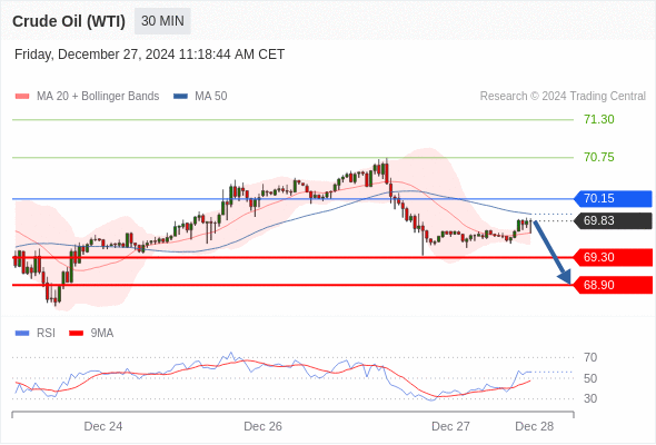 كسر الدعم 69.30والثبات أدنى منه على الأقل بشمعة 4 ساعات سيدفع السعر نحو الدعم التالي 68.90