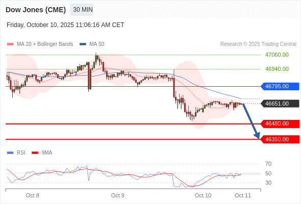 DOWJONES (US30) (CME) تداول يومي: الاتجاه العام هابط