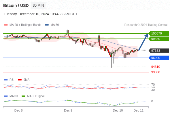 كسر المقاومة. 99560والثبات أعلى منها على الأقل بشمعة 4 ساعات ستدفع السعر نحو المقاومة التالية100570