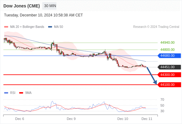 DOWJONES (US30) (CME) تداول يومي: الاتجاه العام هابط