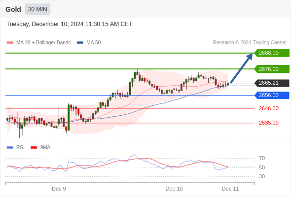كسر المقاومة2676والثبات أعلى منها على الأقل بشمعة 4 ساعات ستدفع السعر نحو المقاومة التالية 2688