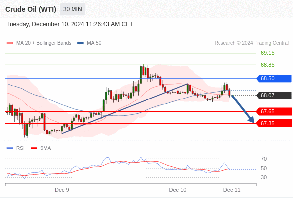 كسر الدعم 67.65والثبات أدنى منه على الأقل بشمعة 4 ساعات سيدفع السعر نحو الدعم التالي 66.60