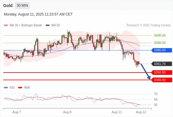 كسر الدعم 3350والثبات أدنى منه على الأقل بشمعة 4 ساعات سيدفع السعر نحو الدعم التالي 3340