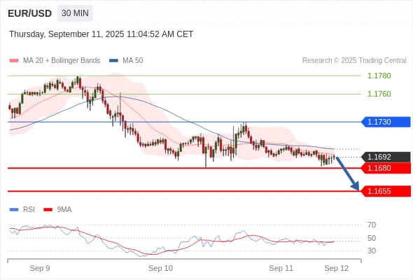 كسر الدعم 1.1680والثبات أدنى منه على الأقل بشمعة 4 ساعات سيدفع السعر نحو الدعم التالية