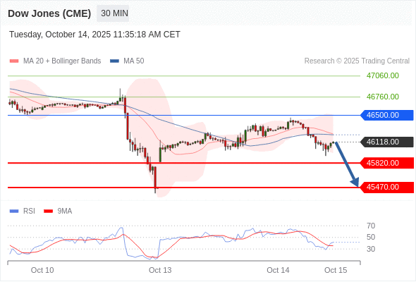 DOWJONES (US30) (CME) تداول يومي: الاتجاه العام هابط
