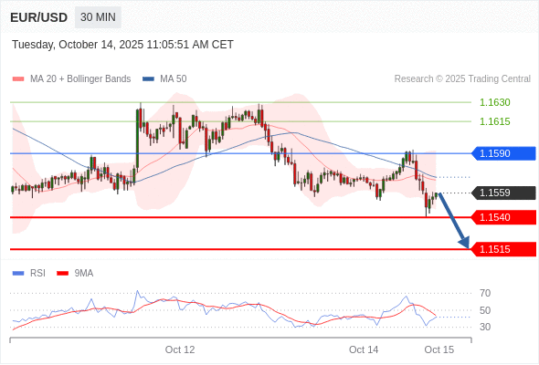 كسر الدعم 1.1540 والثبات أدنى منه على الأقل بشمعة 4 ساعات سيدفع السعر نحو الدعم التالية