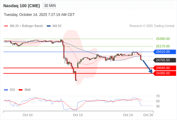 NASDAQ (US100) (CME) تداول يومي: الاتجاه العام هابط