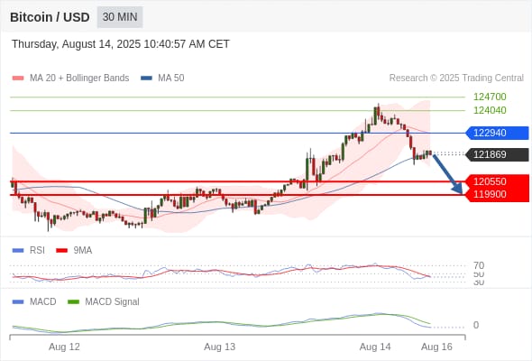 كسر الدعم 120550والثبات أدنى منه على الأقل بشمعة 4 ساعات ستدفع السعر نحو الدعم التالية 119900