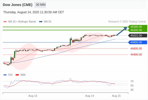 DOWJONES (US30) (CME) تداول يومي: الاتجاه العام صاعد