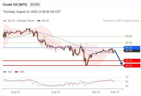 كسر المقاومة. 63.40والثبات أعلى منها على الأقل بشمعة 4 ساعات ستدفع السعر نحو المقاومة التالية 63.80