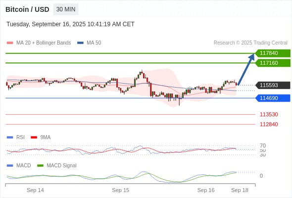 كسر المقاومة 117160والثبات أعلى منها على الأقل بشمعة 4 ساعات ستدفع السعر نحو المقاومة التالية