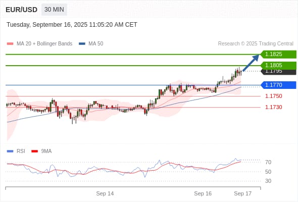 كسر المقاومة. 1.1805والثبات أعلى منها على الأقل بشمعة 4 ساعات ستدفع السعر نحو المقاومة التالية