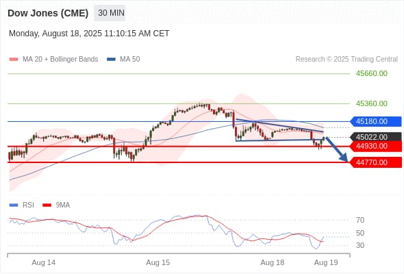 DOWJONES (US30) (CME) تداول يومي: الاتجاه العام هابط