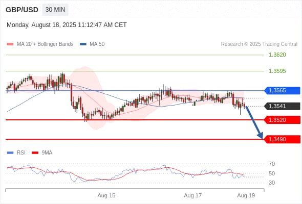 كسر الدعم 1.3520والثبات أدنى منه على الأقل بشمعة 4 ساعات سيدفىع السعر نحو الدعم التالية 1.3490
