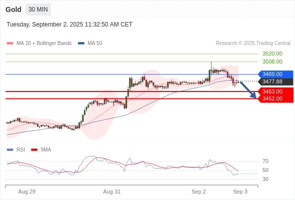 كسر الدعم 3463والثبات أدنى منه على الأقل بشمعة 4 ساعات سيدفع السعر نحو الدعم التالي