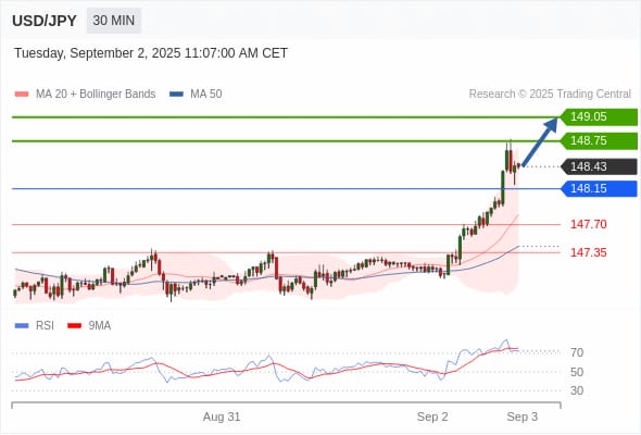 USD/JPY تداول يومي: الاتجاه العام صاعد