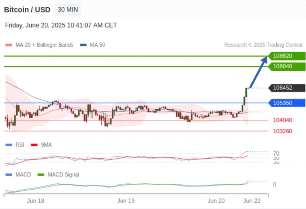 كسر المقاومة 108040والثبات أعلى منها على الأقل بشمعة 4 ساعات ستدفع السعر نحو المقاومة التالية 108820