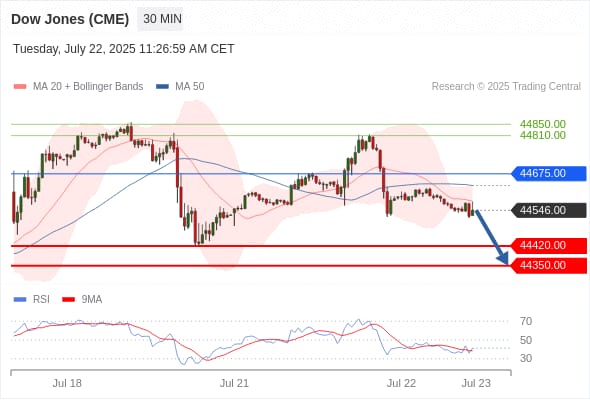 DOWJONES (US30) (CME) تداول يومي: الاتجاه العام هابط