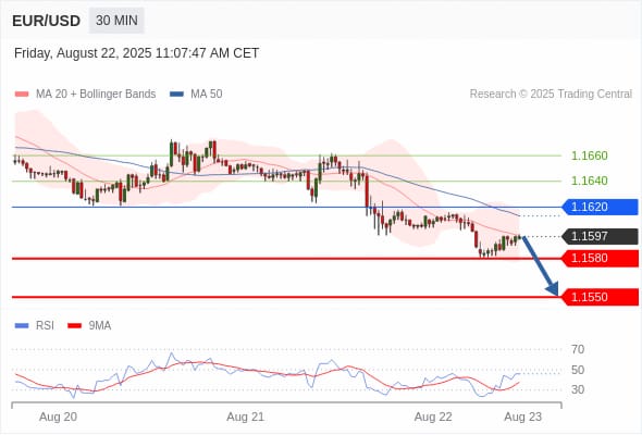 كسر الدعم 1.1580والثبات أدنى منه على الأقل بشمعة 4 ساعات سيدفع السعر نحو الدعم التالية 1.1550