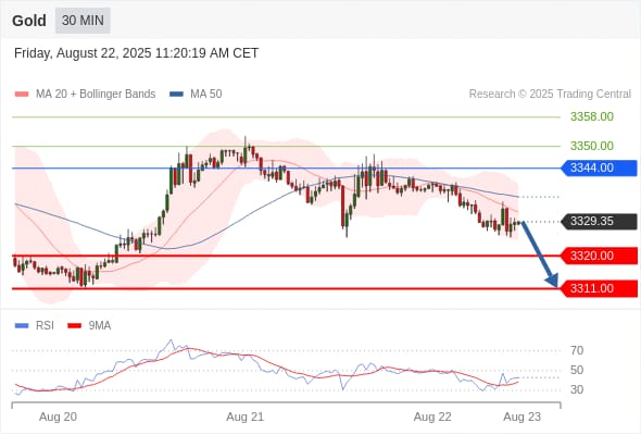 كسر الدعم 3320والثبات أدنى منه على الأقل بشمعة 4 ساعات سيدفع السعر نحو الدعم التالي 3311
