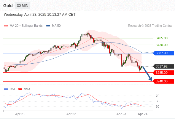 كسر الدعم 3285والثبات أدنى منه على الأقل بشمعة 4 ساعات سيدفع السعر نحو الدعم التالي 3240
