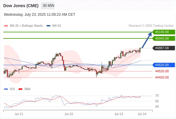 DOWJONES (US30) (CME) تداول يومي: الاتجاه العام صاعد