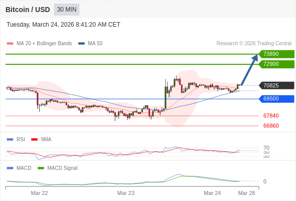 كسر المقاومة 72900 والثبات أعلى منها على الأقل بشمعة 4 ساعات ستدفع السعر نحو المقاومة التالية