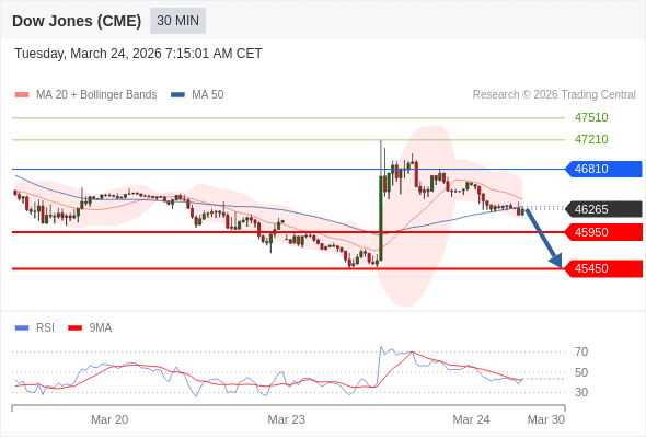 DOWJONES (US30) (CME) تداول يومي: الاتجاه العام هابط