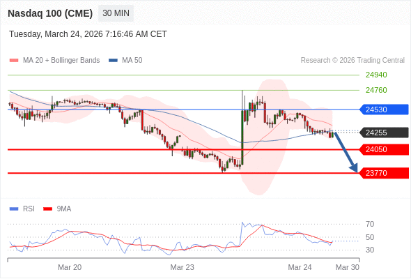 NASDAQ (US100) (CME) تداول يومي: الاتجاه العام هابط