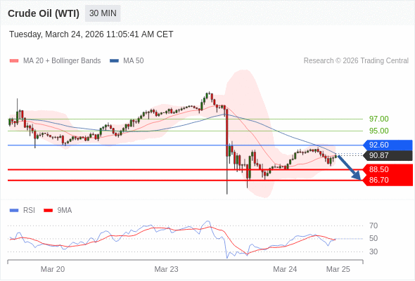 CRUDE OIL (WTI) تداول يومي: الاتجاه العام هابط