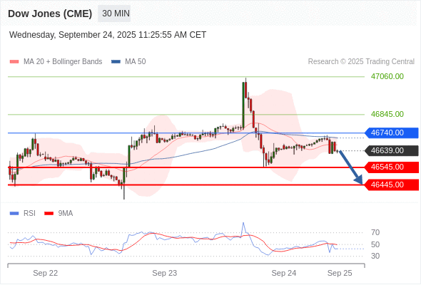 DOWJONES (US30) (CME) تداول يومي: الاتجاه العام هابط