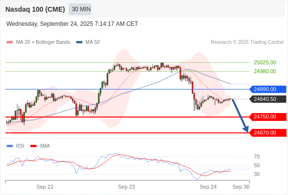 NASDAQ (US100) (CME) تداول يومي: الاتجاه العام هابط