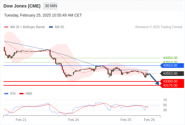 DOWJONES (US30) (CME) تداول يومي: الاتجاه العام هابط