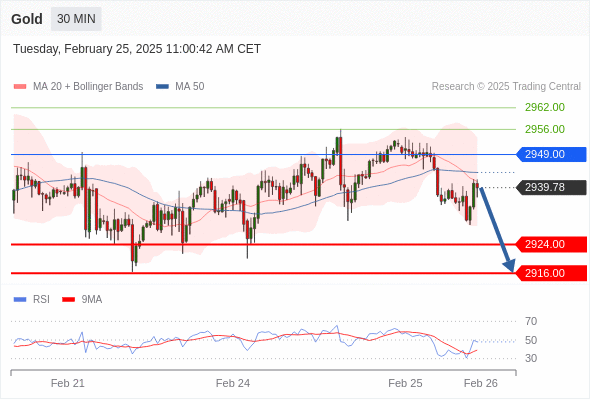 كسر الدعم 2924والثبات أدنى منه على الأقل بشمعة 4 ساعات سيدفع السعر نحو الدعم التالي 2916