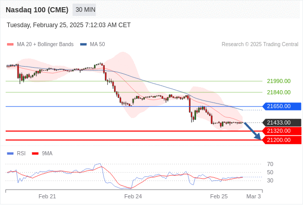 NASDAQ (US100) (CME) تداول يومي: الاتجاه العام هابط