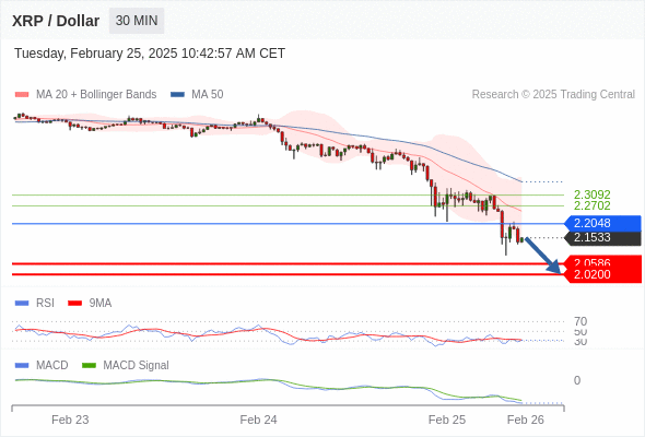 XRP/USD. تداول يومي: الاتجاه العام هابط
