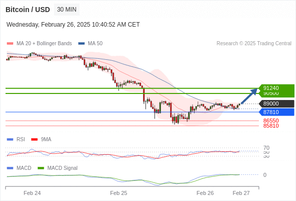 كسر الدعم 86550والثبات أدنى منه على الأقل بشمعة 4 ساعات ستدفع السعر نحو الدعم التالي 85810