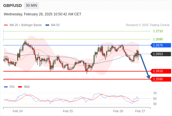كسر الدعم 1.2610والثبات أدنى منه على الأقل بشمعة 4 ساعات سيدفىع السعر نحو الدعم التالي 1.2590