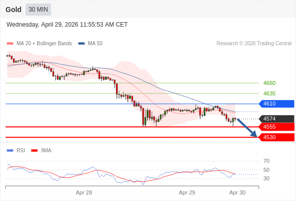 كسر الدعم 4555 والثبات أدنى منه على الأقل بشمعة 4 ساعات سيدفع السعر نحو الدعم التالي