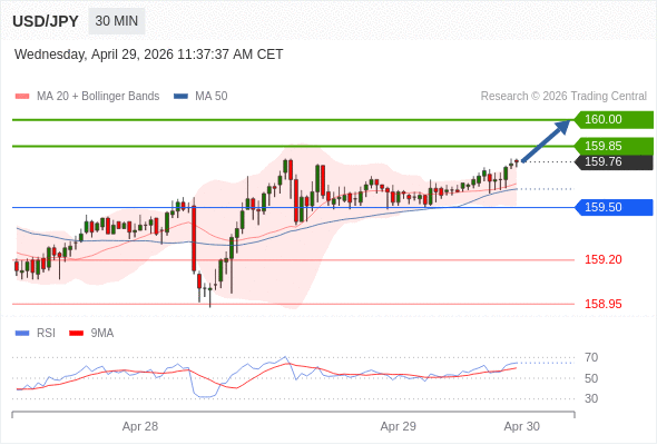 كسر المقاومة 159.85 والثبات أعلى منها على الأقل بشمعة 4 ساعات ستدفع السعر نحو المقاومة التالية