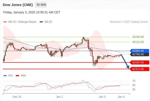 DOWJONES (US30) (CME) تداول يومي: الاتجاه العام هابط