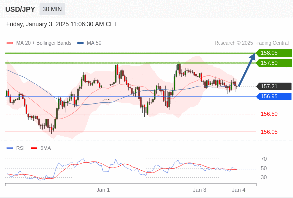 كسر المقاومة. 157.80ثبات أعلى منها على الأقل بشمعة 4 ساعات ستدفع السعر نحو المقاومة التالية158.05
