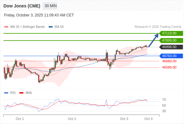 DOWJONES (US30) (CME) تداول يومي: الاتجاه العام صاعد
