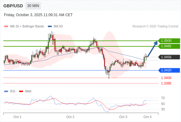 كسر المقاومة 1.3485 والثبات أعلى منها على الأقل بشمعة 4 ساعات ستدفع السعر نحو المقاومة التالية