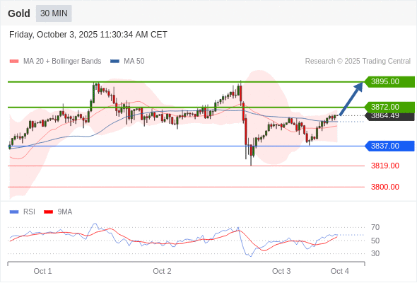 كسر المقاومة 3872 والثبات أعلى منها على الأقل بشمعة 4 ساعات ستدفع السعر نحو المقاومة التالية