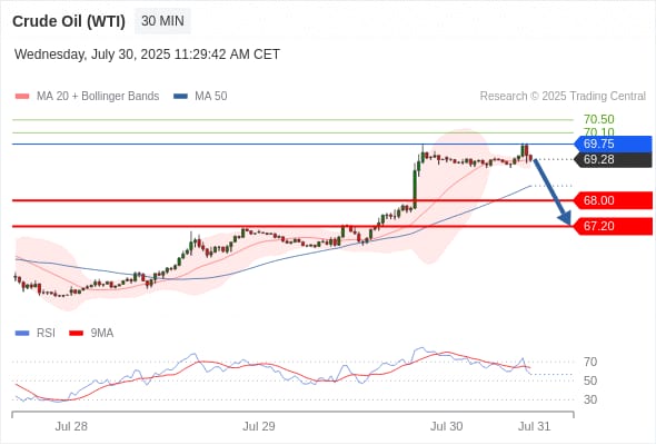 CRUDE OIL (WTI) تداول يومي: الاتجاه العام هابط