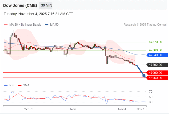 DOWJONES (US30) (CME) تداول يومي: الاتجاه العام هابط