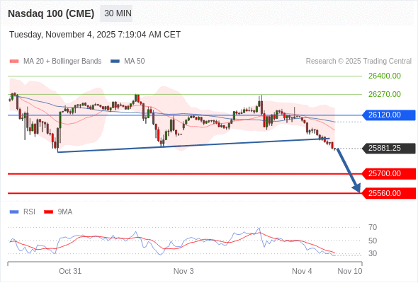 NASDAQ (US100) (CME) تداول يومي: الاتجاه العام هابط