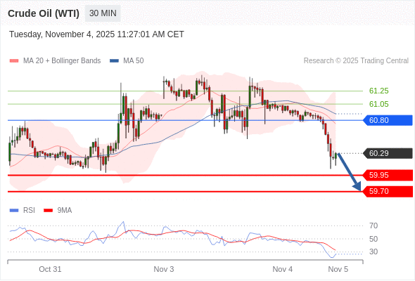 CRUDE OIL (WTI) تداول يومي: الاتجاه العام هابط